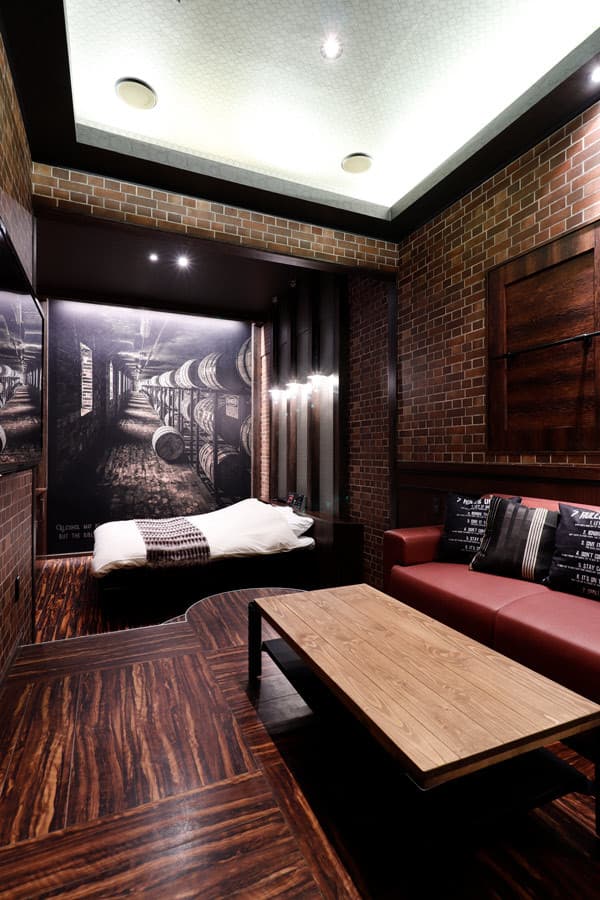 - フォトジェニックな熟成中の「樽」を映したビッグサイズのフォト壁紙が主役のお部屋です。